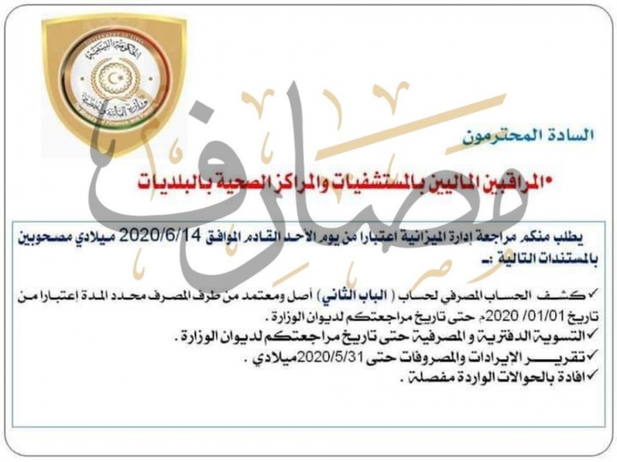 وزارة المالية تطالب المراقبين الماليين بإرسال إفادة التسوية الدفترية والمصرفية لها قناة الفضائية الليبية