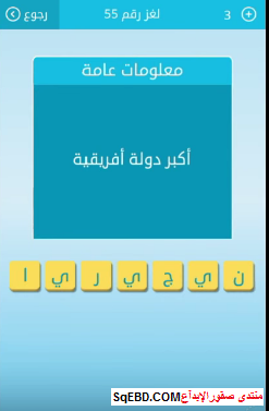 جواب لغز اكبر دولة افريقية من اللغز رقم 55 من لعبة رشفة للمجموعة السابعة صقور الإبدآع