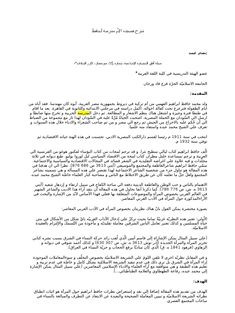 شرح قصيدة الأم مدرسة لحافظ