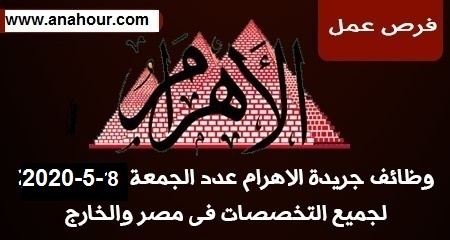وظائف الأهرام الجمعة 8 5 2020 جريدة الاهرام المصرية وظائف خالية