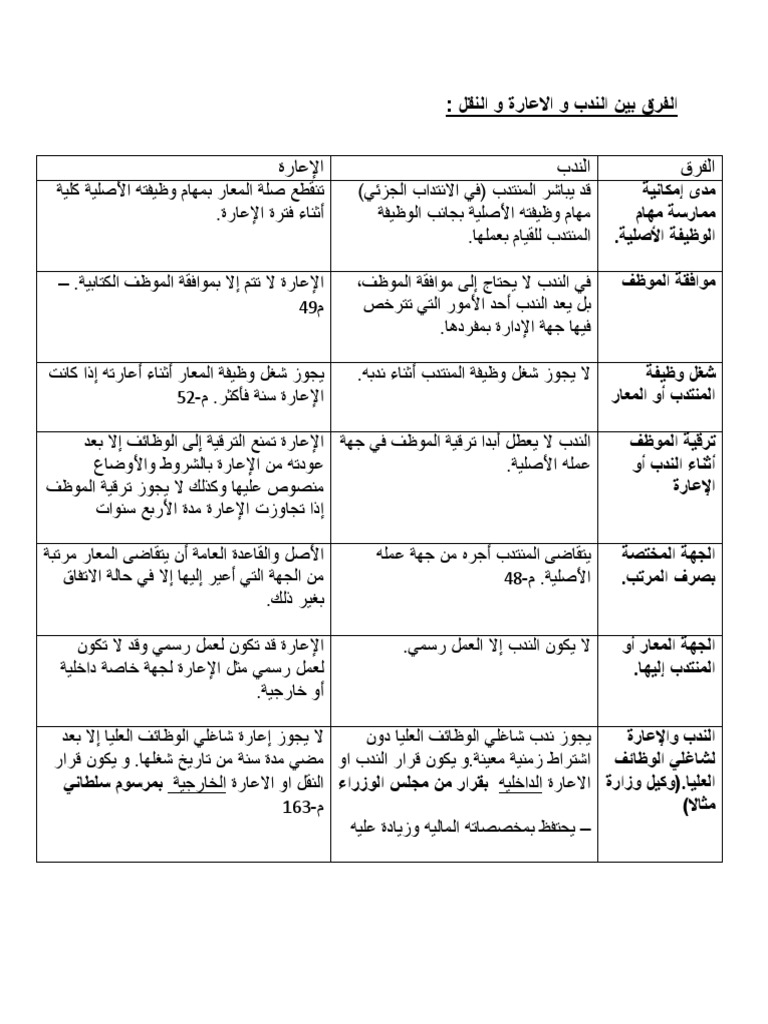 الفرق بين الندب و الاعارة و النقل Docx