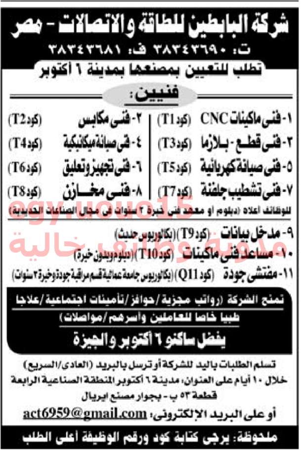 وظائف شركة البابطين للطاقة والاتصالات من الاهرام الجمعة 20 4 2018 وظائف خاليه