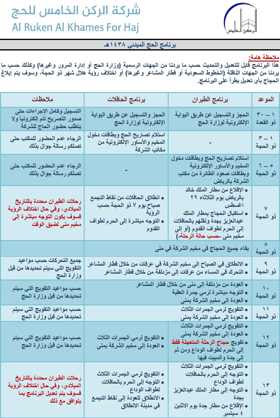 شركة الركن الخامس للحج On Twitter برنامج الحج 1438