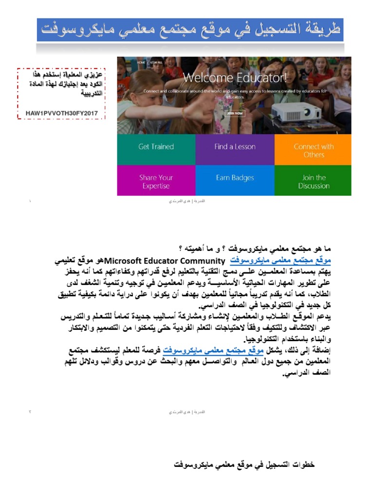 طريقة التسجيل في موقع معلمي مايكروسوفت Pdf