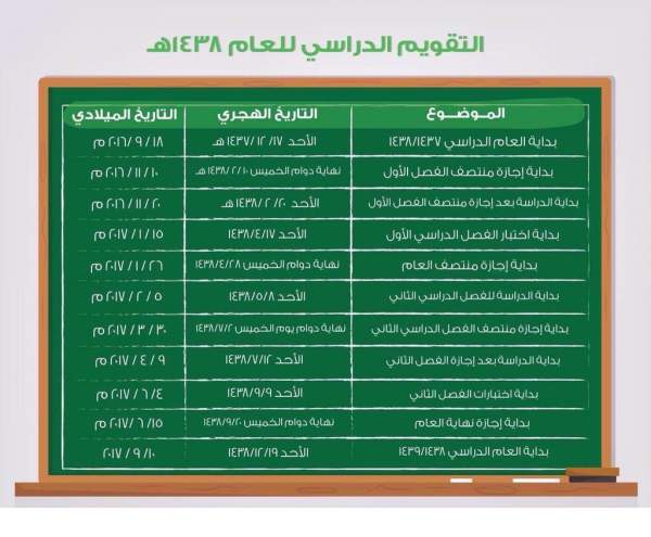 السعودية التقويم الدراسي لعام 1438هـ و لائحة العطل 2016 2017