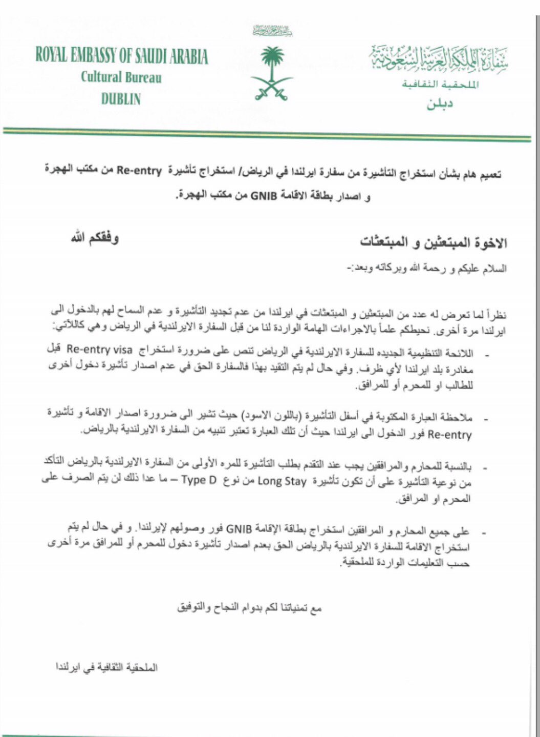 نادي الطلبة السعوديين في ايرلندا A Twitter تعميم هام جدا بخصوص ال Re Entry Visa مختصر التعميم يجب على الطالب استخراج الفيزا قبل مغادرة دولة ايرلندا دبلن مبتعث Https T Co Wagzvue4ub
