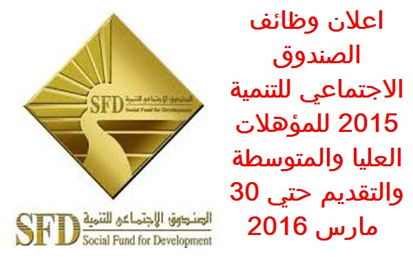 اعلان وظائف الصندوق الاجتماعي للتنمية 2015 للمؤهلات العليا والمتوسطة والتقديم حتي 30 مارس 2016