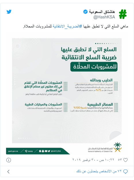 الهيئة العامة للزكاة والدخل On Twitter من أهداف ضريبة السلع الانتقائية الحد من الإسراف في استهلاك السلع الضارة على الصحة والبيئة حيث ت فرض بنسب متفاوتة على المشروبات الغازية ومشروبات الطاقة والتبغ ومشتقاته