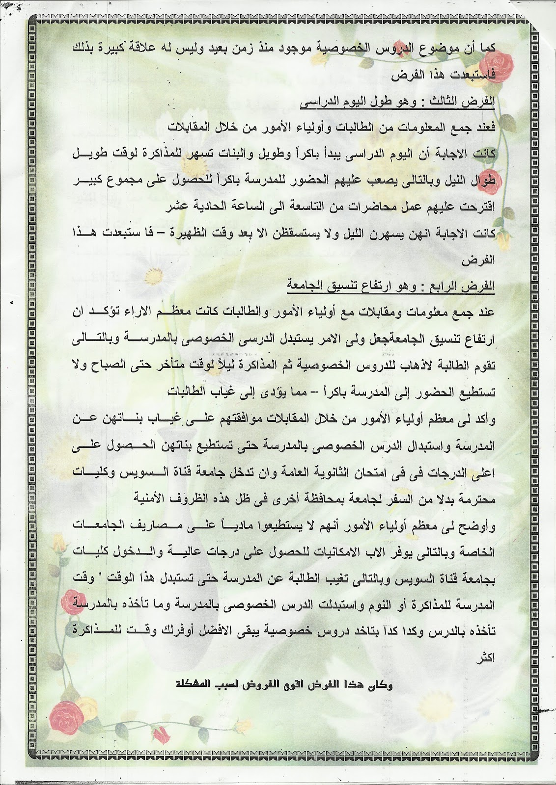 مدرسة السلام الثانوية بنات بالإسماعيلية بحث اجرائي في مادة علم النفس