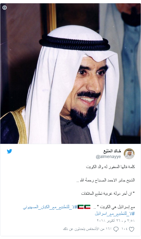 عبدالله الشايجي En Twitter في زمن تسابق التطبيع العربي والخليجي مع إسرائيل تبقى الكويت هي الاستثناء وتقرن الكويت القول بالفعل كنت قلت أن الكويت هي الدولة والنظام والشعب التي تجمع أركانها بعدم التطبيع في
