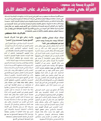 مقالات الأميرة بسمة بنت سعود الأميرة بسمة بنت سعود المرأة هي نصف المجتمع وتشرف على النصف الآخر مجلة الرجل نوفمبر وديسمبر 2010م