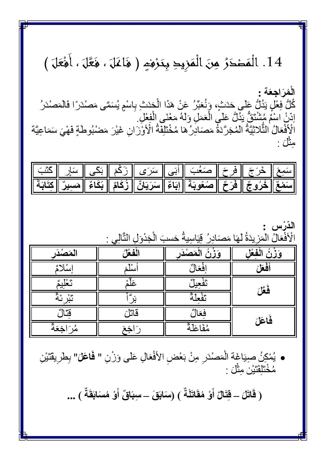 موسوعة المعلم والتلميذ المصدر من الفعل المزيد ملخص دروس قواعد اللغة سنة سادسة مع تمارين