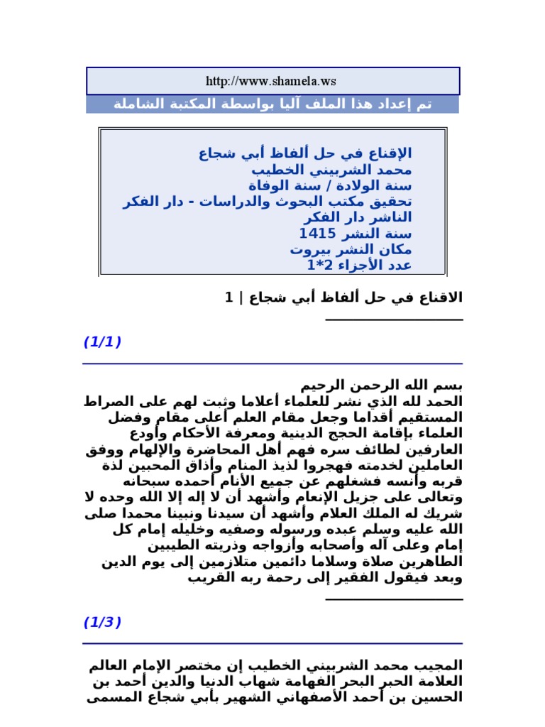 الإقناع في حل ألفاظ أبي شجاع الخطيب الشربيني 1
