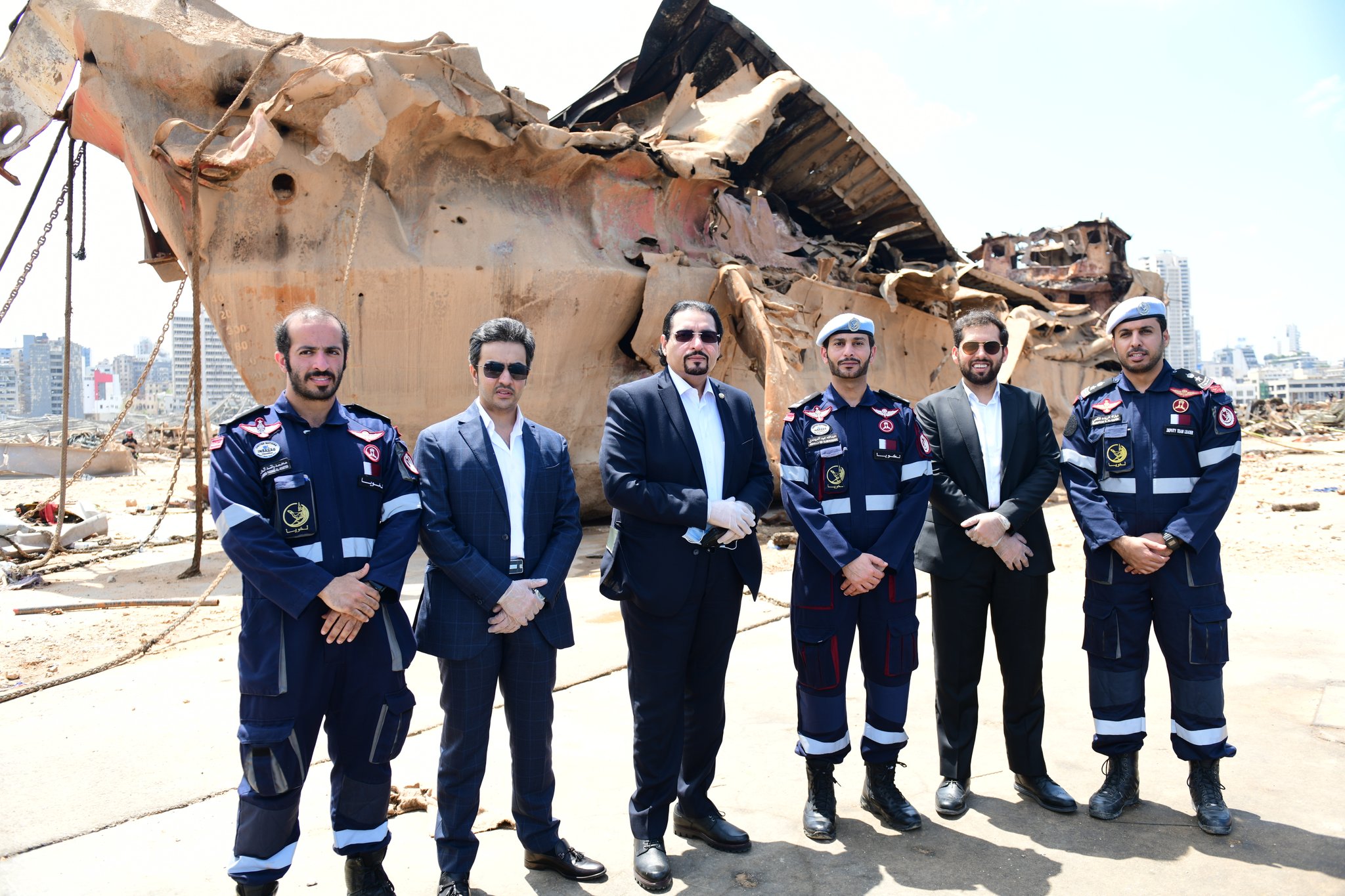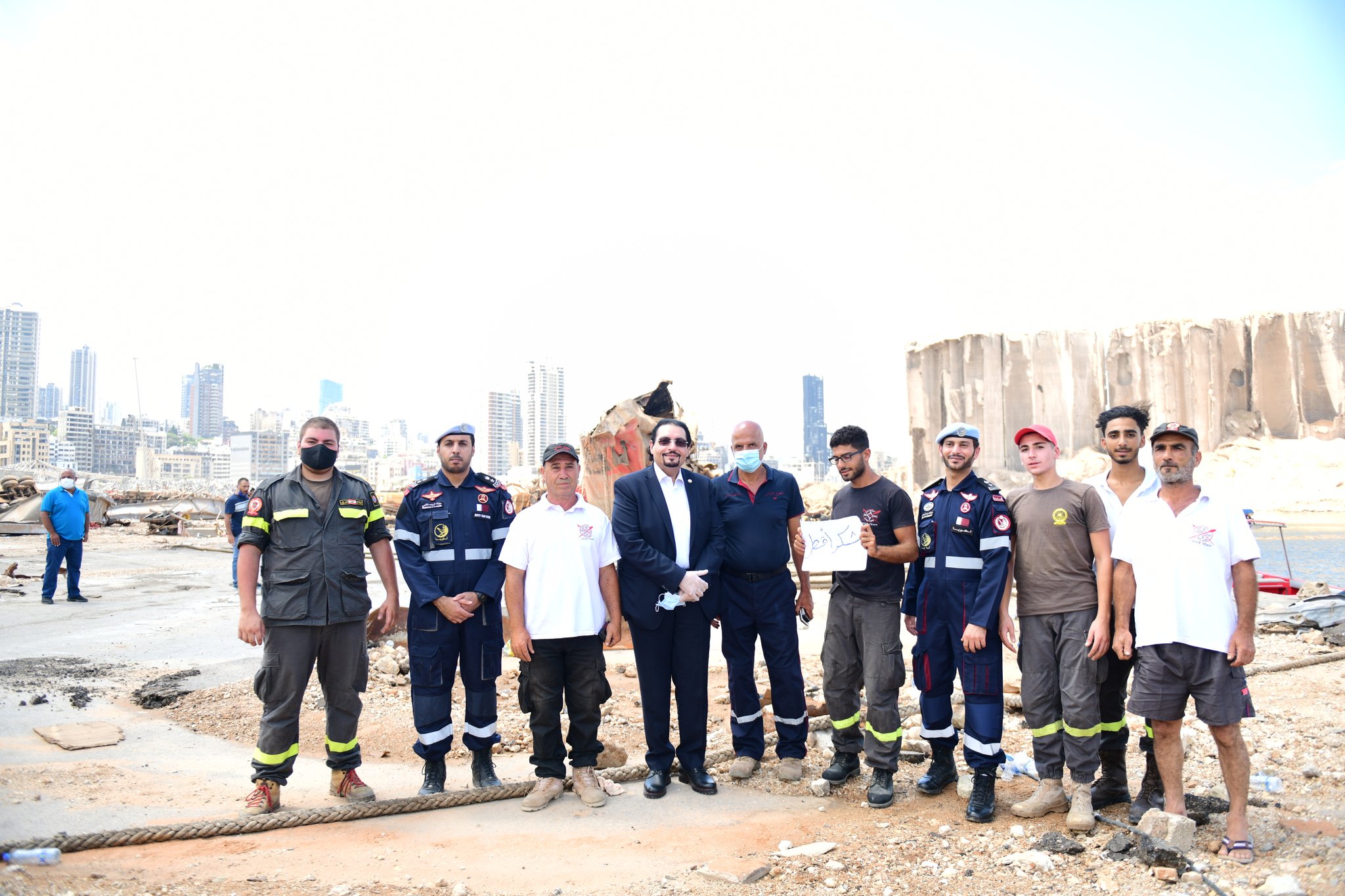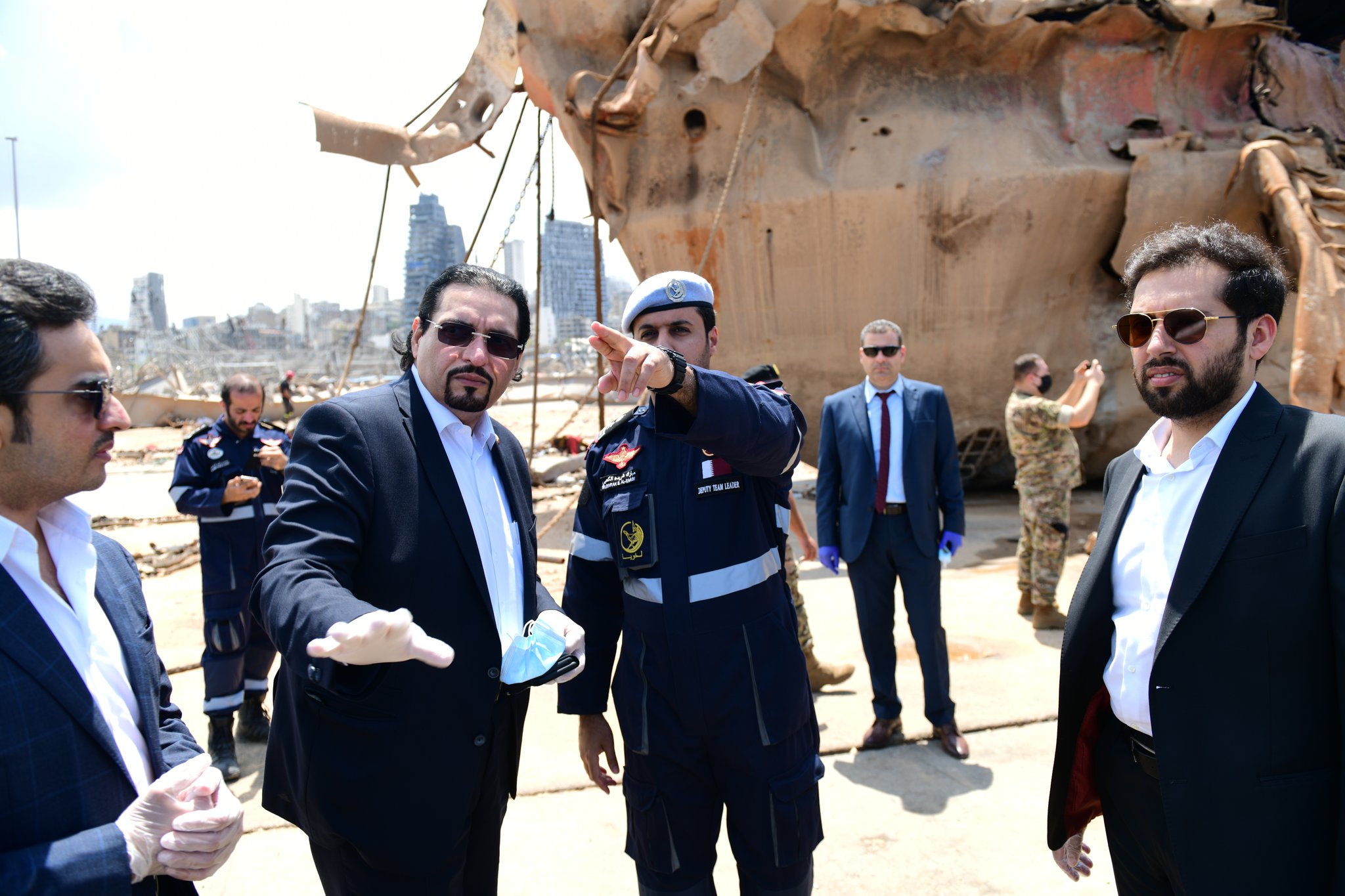 سفير قطر يتفقد فريق البحث والإنقاذ القطري في موقع انفجار مرفأ بيروت