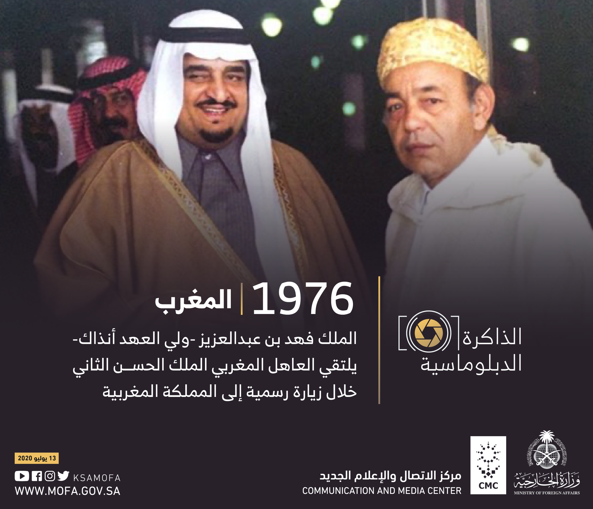 الصورة تجمع سيدي الملك سلمان حفظه الله ورعاه والملك فيصل والملك الحسن الثاني ملك المغرب وتم التقاطها في الرياض عام ١٣٨٨ هجريا الموافق ١٩٦٨ ميلاديا.