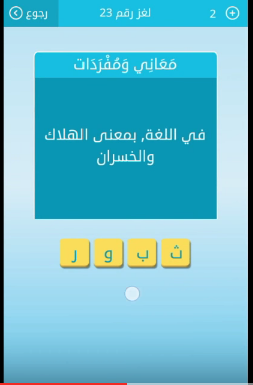 حل سؤال فى اللغة بمعنى الهلاك والخسران من لعبة رشفة لغز رقم 23 للمجموعة الثالثة صقور الإبدآع