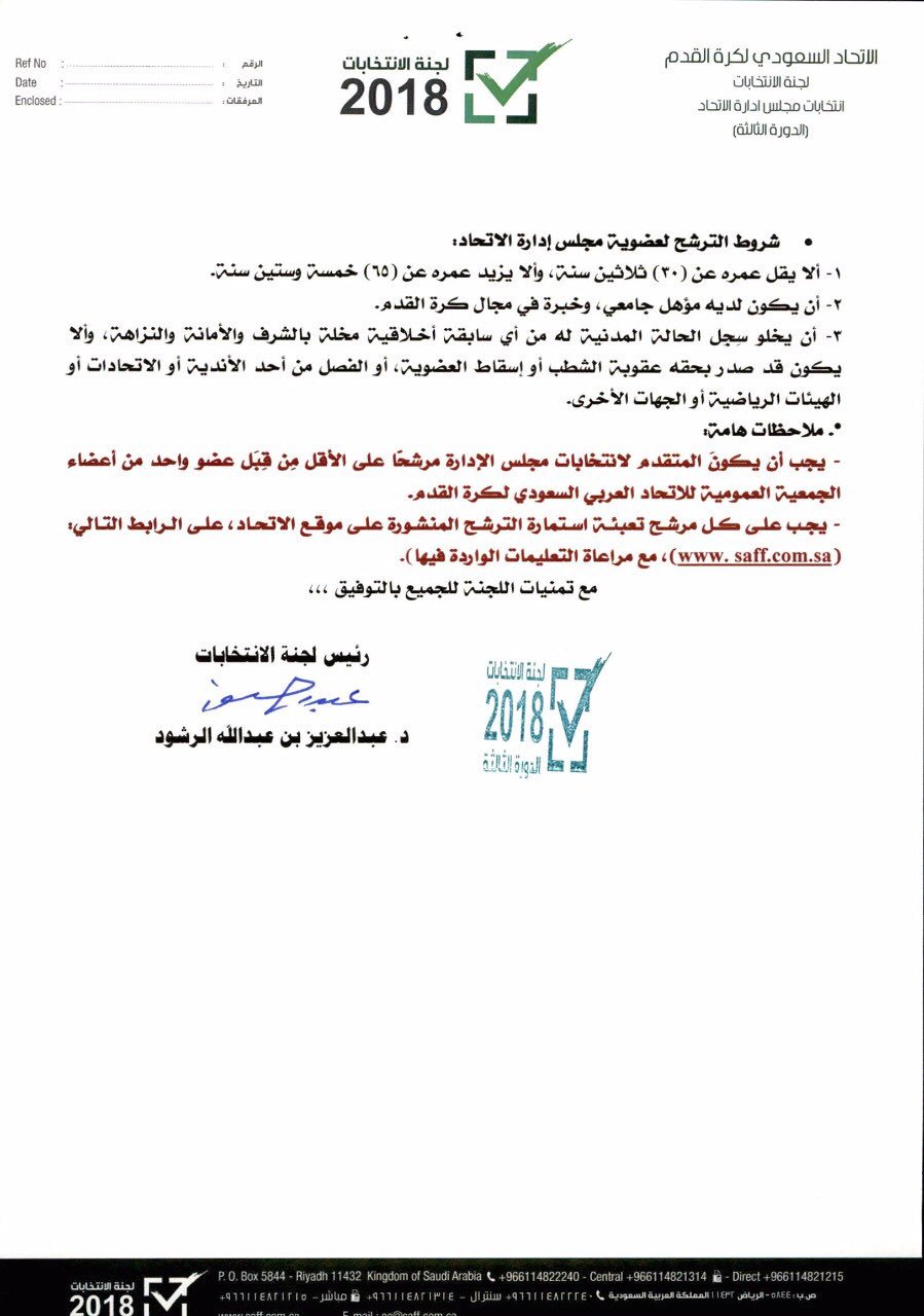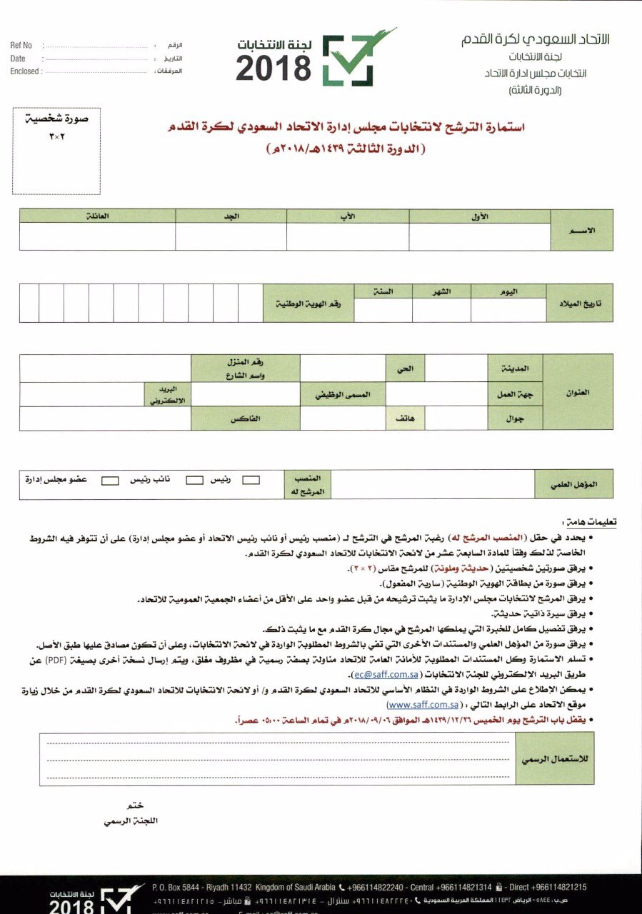 لجنة انتخابات اتحاد القدم السعودي تنشر استمارة الترشح صحيفة الرياضية