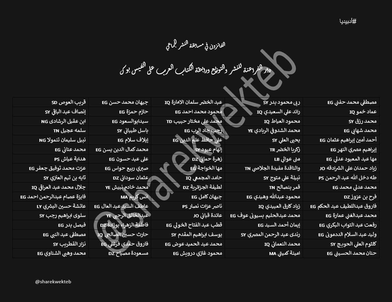 الفائزون في مسابقة الكتب المجمعة من دار الفراعنة للنشر والتوزيع بالتعاون مع رابطة الكتاب العرب على الفيس بوك أدب برس أدب ثقافة فن مسابقات و جوائز