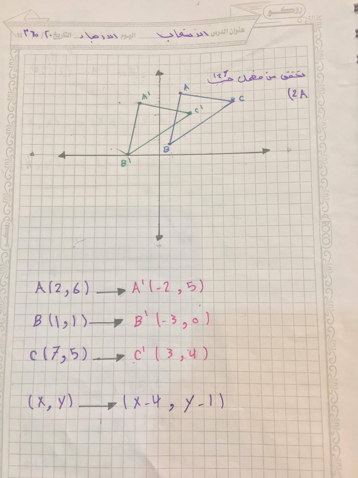 الأول الثانوي الفصل الدراسي الثاني رياضيات حل أسئلة الكتاب الإزاحة الانسحاب Youtube