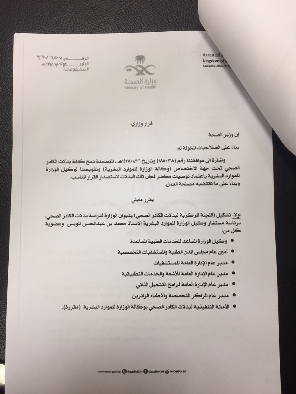 الأخبار الصحية En Twitter وزارة الصحة قرار تشكيل لجنة بدلات الكادر الصحي وزارة الصحة Https T Co Zezphcljvv