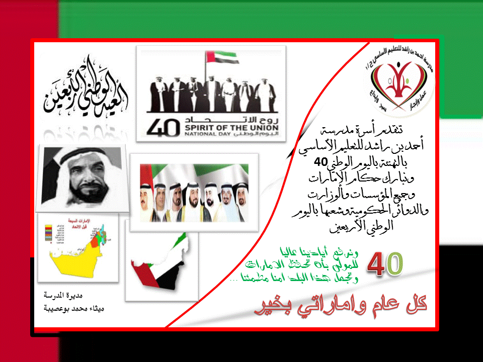 مدرسة أحمد بن راشد بطاقة تهنئة من مدرسة أحمد بن راشد إلى حكام وشعب الامارات