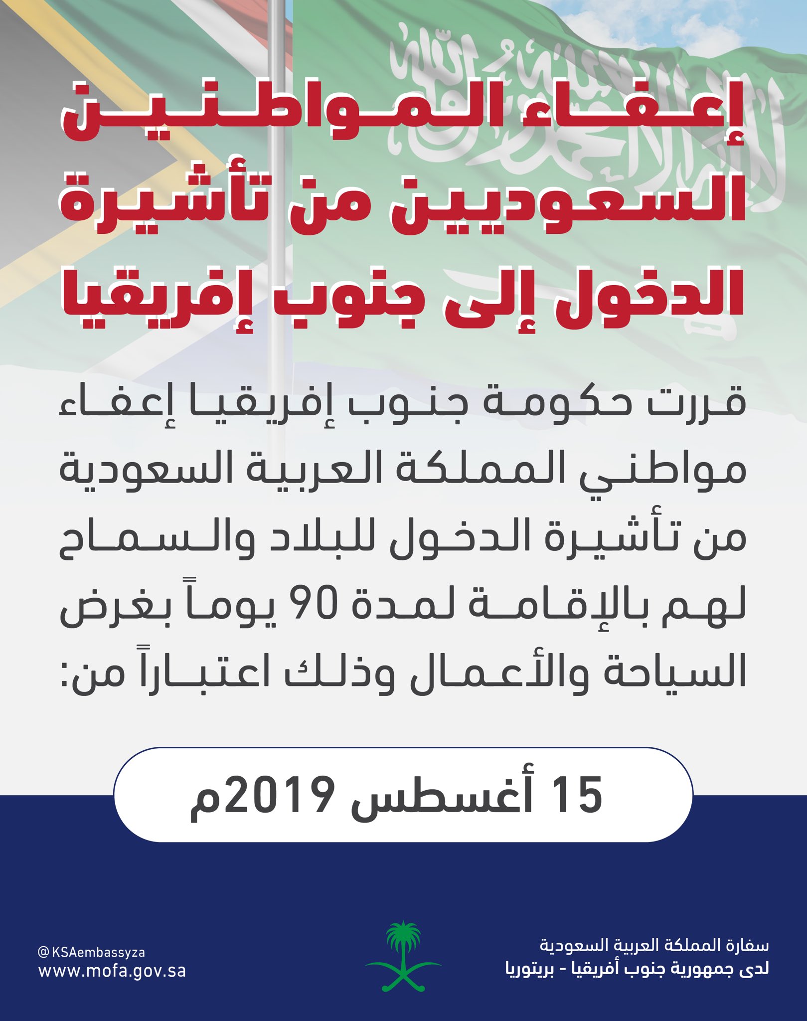 Saudi Embassy In South Africa On Twitter إعفاء المواطنين السعوديين من تأشيرة الدخول إلى جنوب إفريقيا