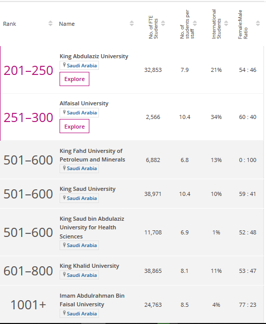السعودية بالأرقام Pa Twitter ١٠ جامعات سعودية ضمن تصنيف الجامعات العالمية Qs ٢٠٢١م على رأسها جامعة الملك عبدالعزيز في المركز ١٤٣ عالميا ثم جامعة الملك فهد للبترول والمعادن ١٨٦ ثم جامعة الملك سعود ٢٨٧