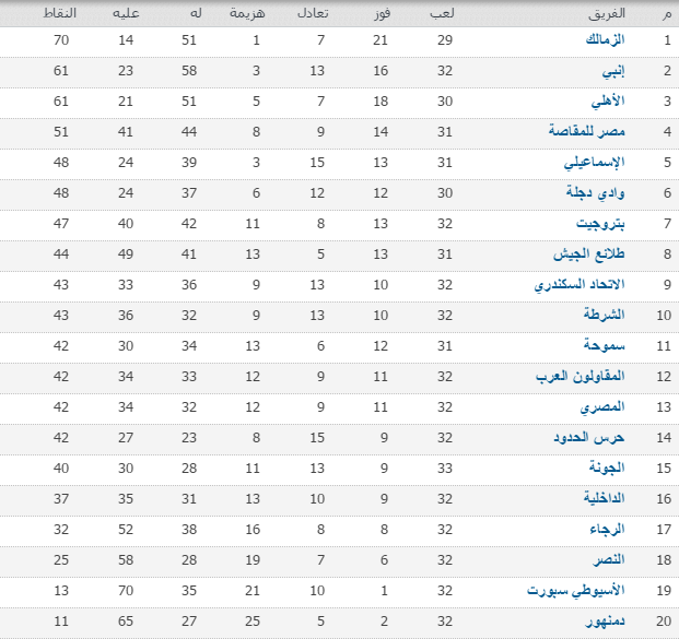 جدول ترتيب فرق الدورى المصرى 2014 2015 دكتور ايجى Dregy Net